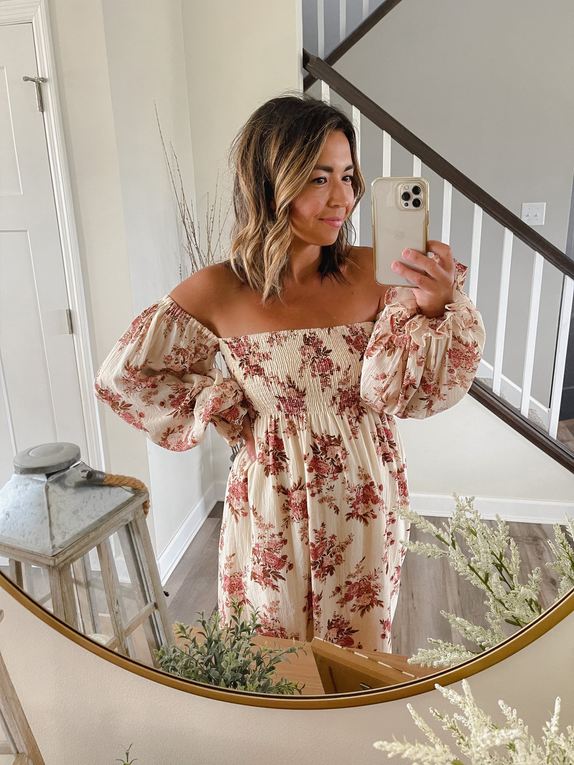 Carmen Cream Floral Midi Dress