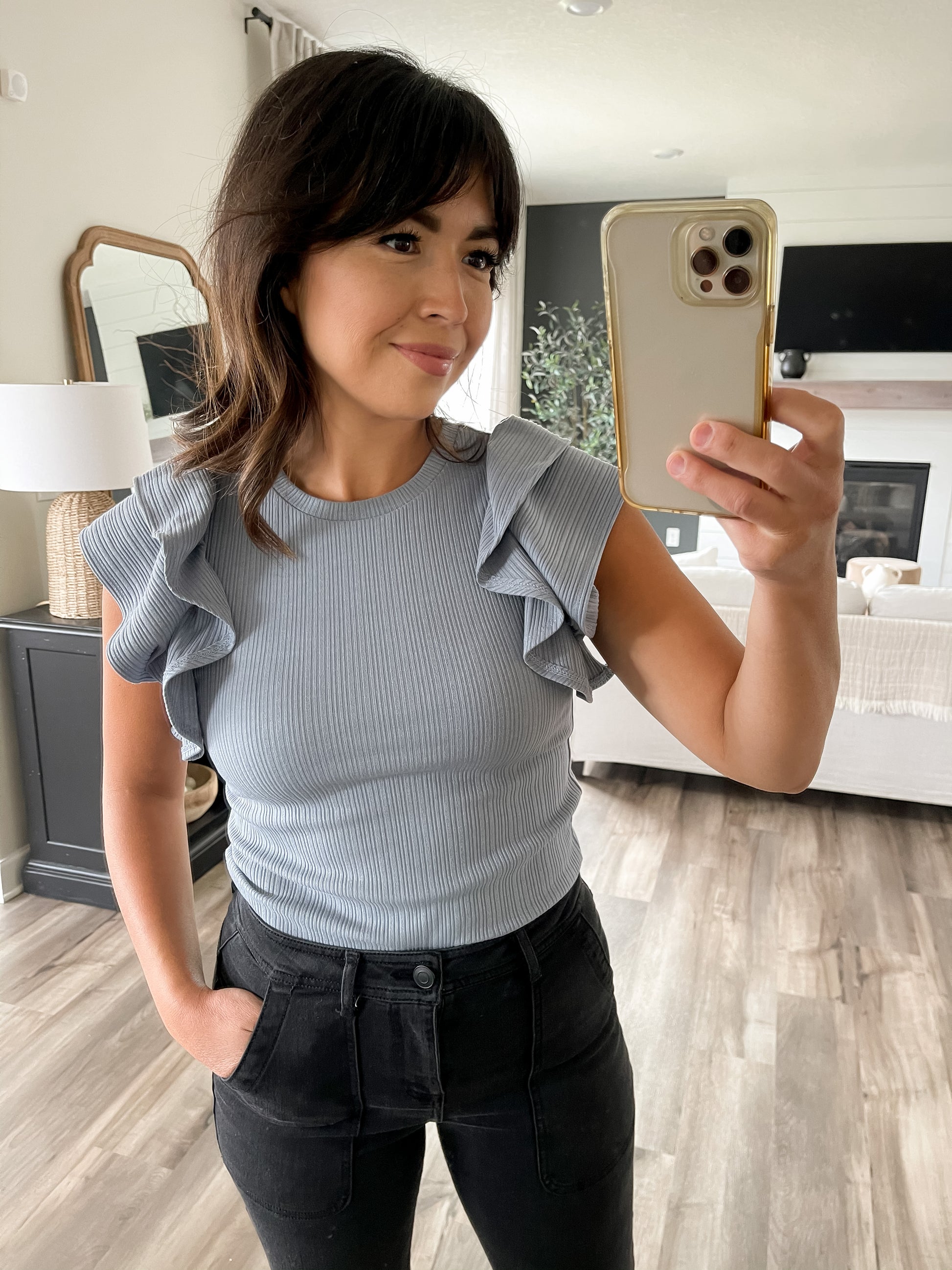 Ribbed Ruffle Sleeve Top - FINAL SALE